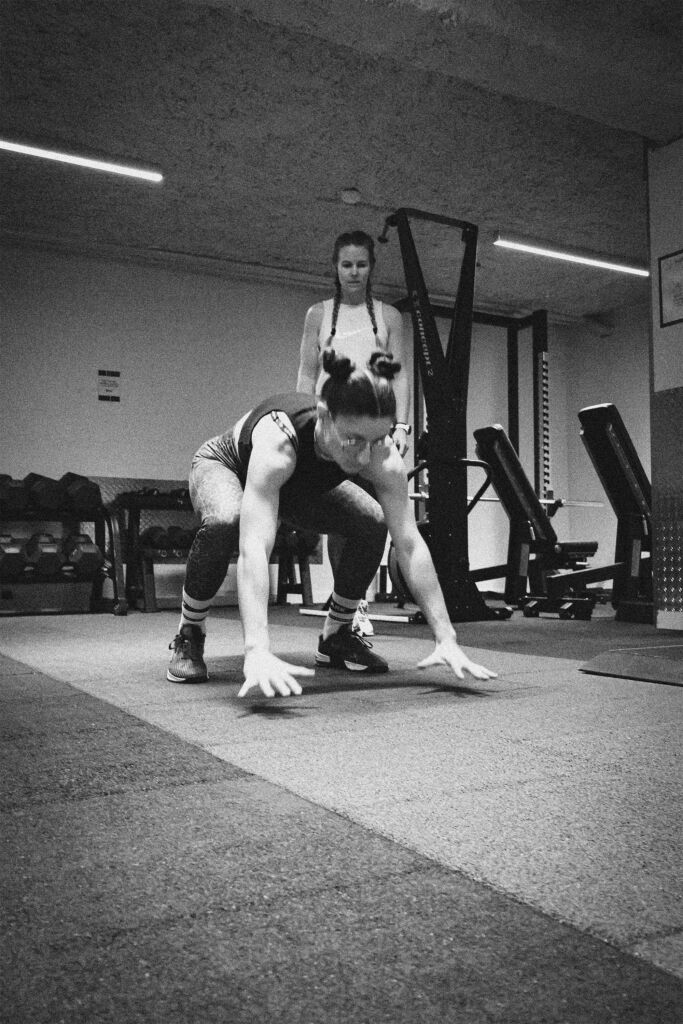- Le premier athlète doit commencer par compléter un burpee. Les deux mains posées sur le sol derrière la ligne blanche de début.