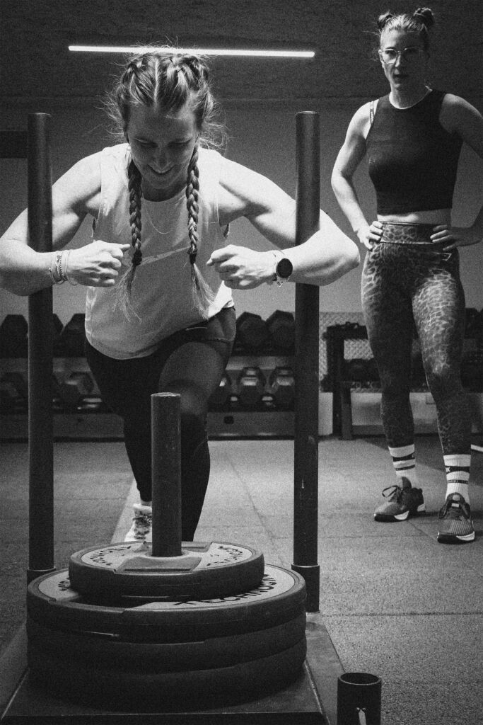 Le sled push consiste à pousser un traîneau lesté sur une surface qui glisse.